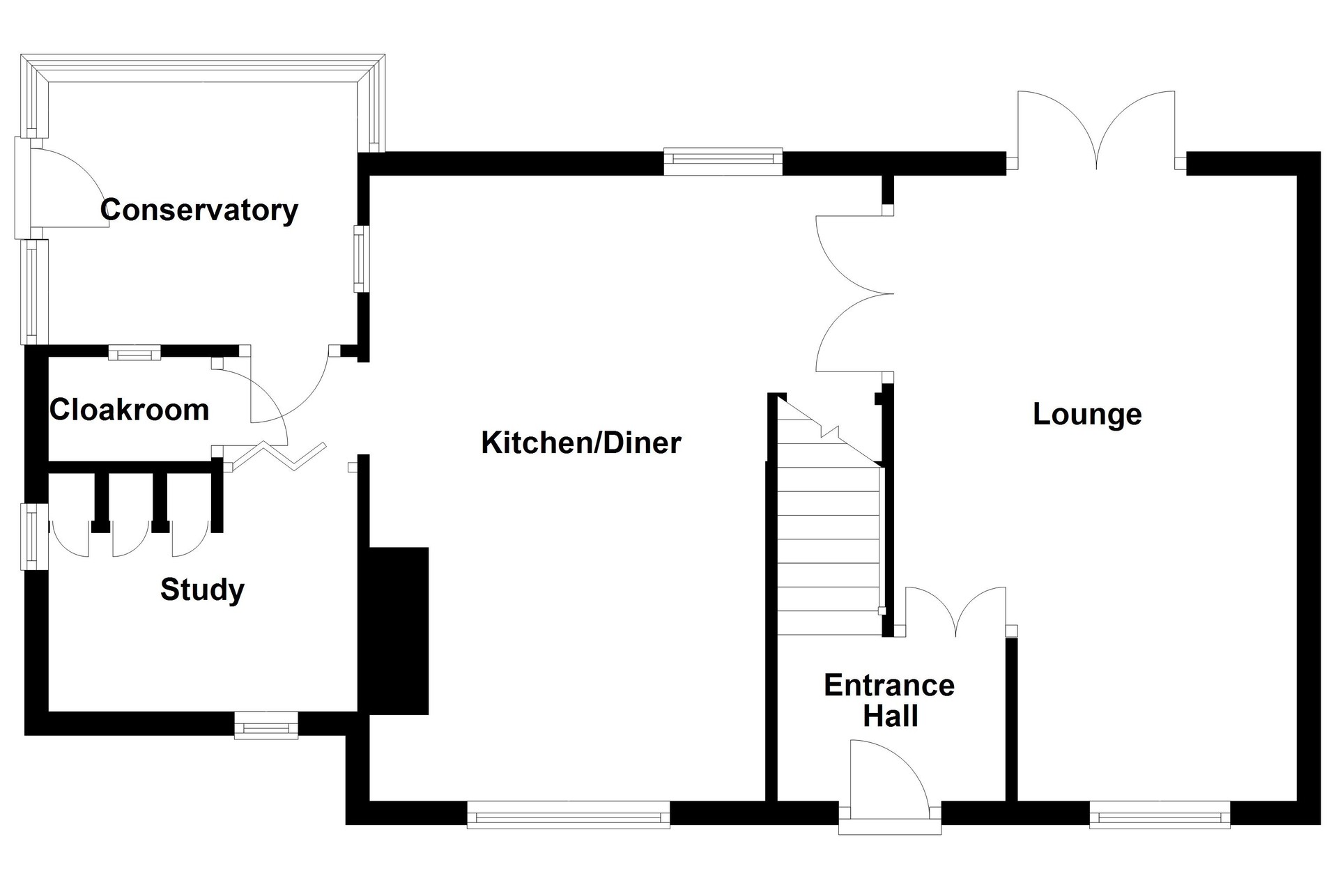 As you step inside this property, you are greeted by an inviting entrance hall, complete with a staircase leading to the first floor. A door leads through to the classic kitchen/diner, a spacious room featuring integrated appliances and provides space for a dishwasher and fridge. An under-stairs cupboard offers additional storage, and there is ample room for a dining table and chairs. The front-facing window provides pleasant views of the surrounding fields. The lounge offers a spacious layout, benefitting from a log burner and double doors that lead to the rear garden. The study is a functional space with front-facing views and includes built-in storage cupboards for added convenience. The room is an ideal space for working from home. The conservatory is a bright and airy room, featuring pleasant views and a door that leads to the rear garden. To complete the ground floor is the cloakroom that includes a hand-wash basin and WC.