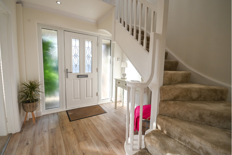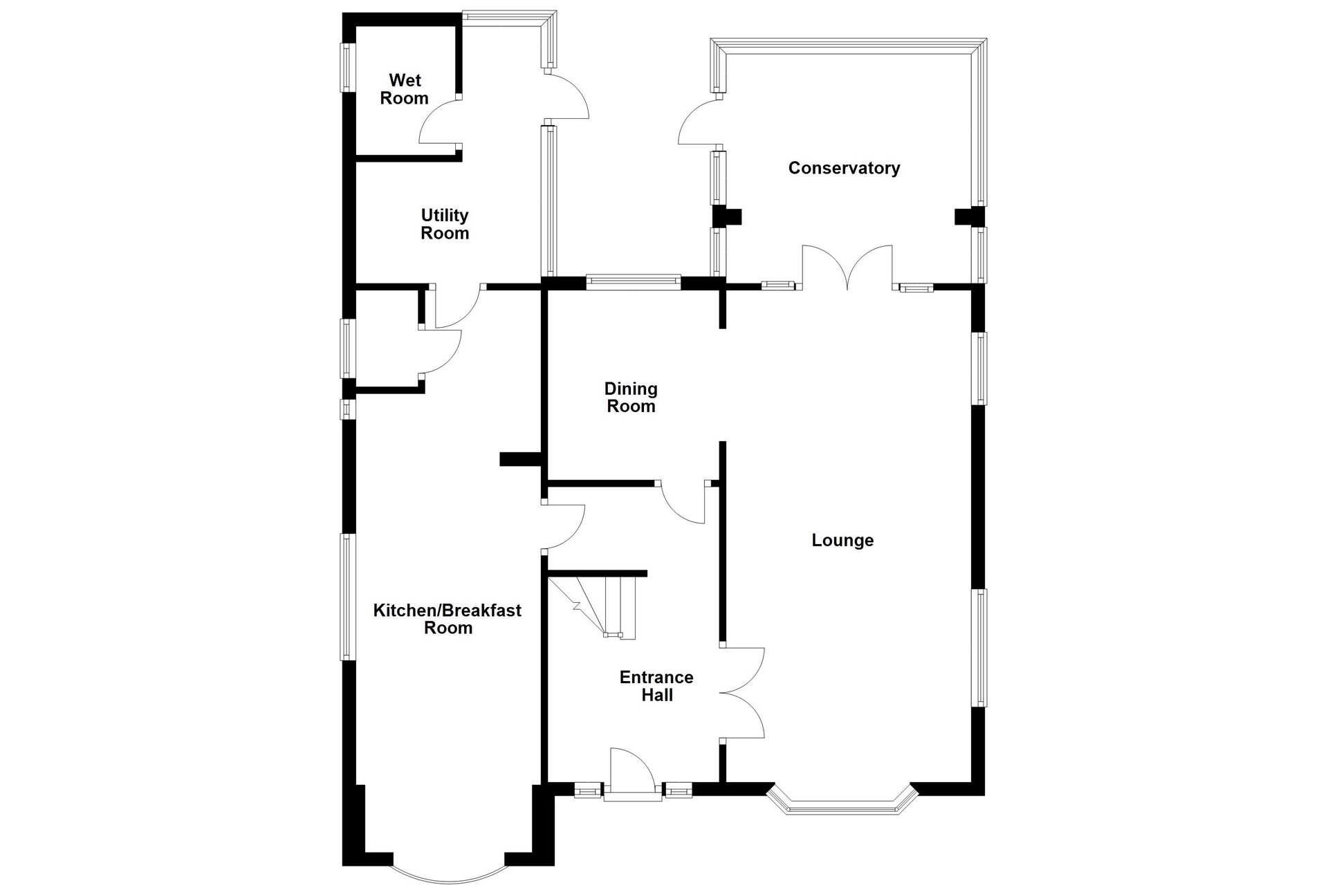 Upon entering the house, you're welcomed by a bright and spacious entrance hall, complete with stairs rising to the first-floor and doors leading off to the main living areas. Double doors open into the lounge, boasting a spacious layout and is laid to carpet, with ample space for free-standing furniture. Windows flood the room with natural light, while a log burner adds warmth and character. From here, double doors lead into the conservatory, a bright and airy space with rear garden views, ideal for relaxing or entertaining. This room also offers direct access to the rear garden. The dining room is a functional and inviting area, perfect for hosting meals, and benefits from a window that frames views of the rear garden. The kitchen/breakfast room is sleek, modern, and well-appointed. It includes an integrated oven, hob, and dishwasher, with space provided for a fridge and freezer. A breakfast bar offers a dining option, while a pantry provides additional storage. A front-facing window brings in natural light, and a cleverly designed cabinet features an automatic light when opened for added convenience. Adjacent to the kitchen is the utility room, providing space for a washing machine and houses for the boiler. It also offers access to the rear garden and benefits from windows to brighten the space. Nearby, the wet room includes a shower attachment, hand-wash basin, and WC, adding practicality to the ground floor layout.