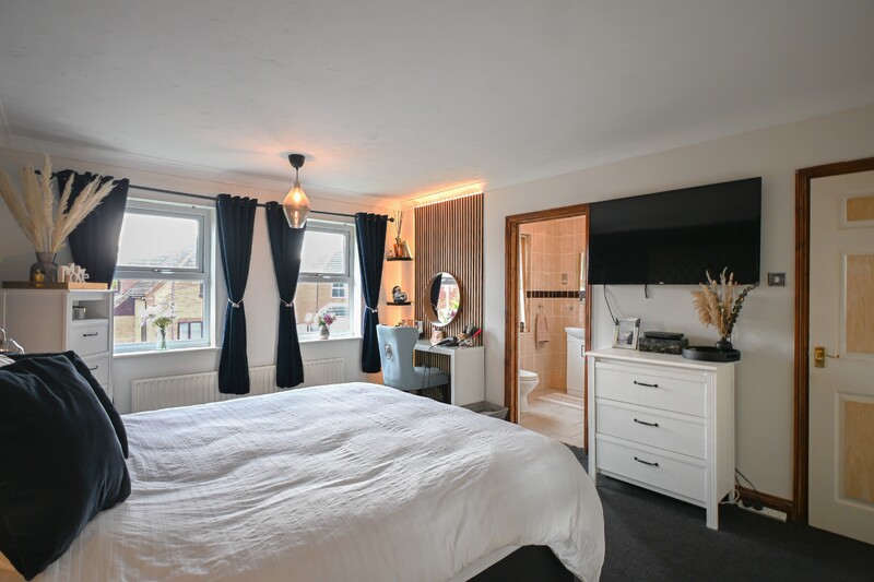 The first-floor accommodates four bedrooms, a family bathroom, and an en suite, all thoughtfully arranged to provide comfort and practicality for family living. The family bathroom features a bath, shower, hand-wash basin, and WC. Bedroom one is a generously-sized space, offering ample room for a double or even a king-sized bed, along with additional bedroom furnishings. Two windows allow plenty of natural light to fill the room, creating a bright and airy atmosphere. Completing this space is the en suite, featuring a shower, hand-wash basin, and WC, a perfect private retreat. Bedroom two is another spacious double room, providing plenty of space for a bed and additional furnishings. Bedroom three is well-appointed, with a window overlooking the rear garden and space for a bed and other furniture, making it a comfortable and peaceful setting. Bedroom four completes the first-floor. This versatile room can be used as a bedroom, home office, or hobby room, offering flexibility to suit your lifestyle.