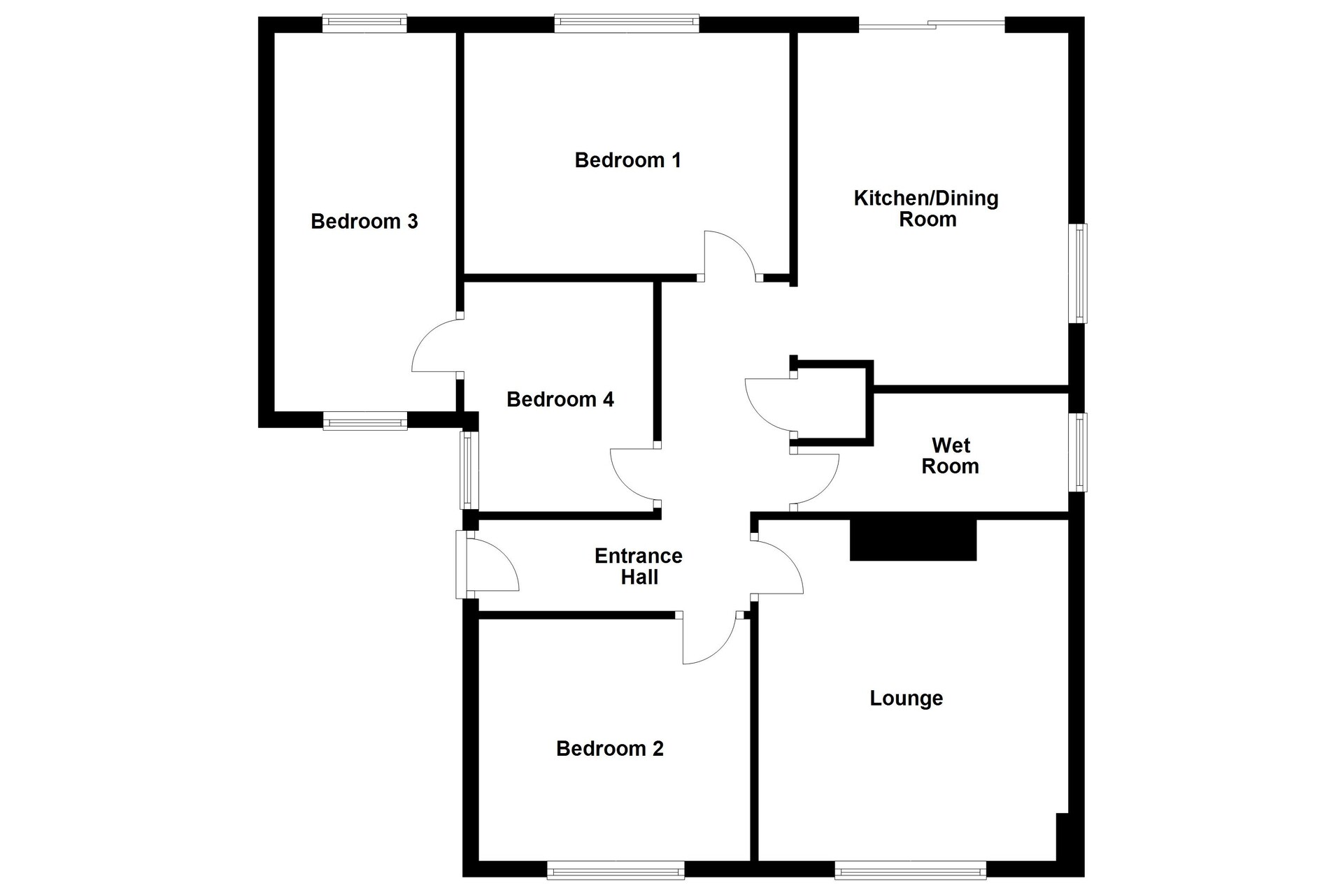As you enter, you're greeted by the entrance hall. The lounge is a well-proportioned room offering ample space for free-standing furniture, a perfect spot to sit back and relax. A window allows in natural light, giving the room a bright and airy feel. The kitchen/dining room is ready for it's own modern touch. It provides room for appliances and dining furnishings, with sliding doors leading out to the rear garden, creating an easy flow between indoor and outdoor living. The wet room is also awaiting your personal style and features a shower, hand-wash basin, and WC, offering practicality with room for improvement. Bedroom one is a double-sized room featuring a window looking out to the rear garden and space for additional bedroom furnishings. Bedroom two is another double-sized room, brightened by a window and ready for your cosy personal touch. Bedroom three is a converted garage and a well-proportioned space, with two windows allowing in natural light. It offers space for a double bed and additional bedroom furniture. It is accessed through bedroom four, a versatile room that can be used as a bedroom, dressing room, or study depending on your needs.