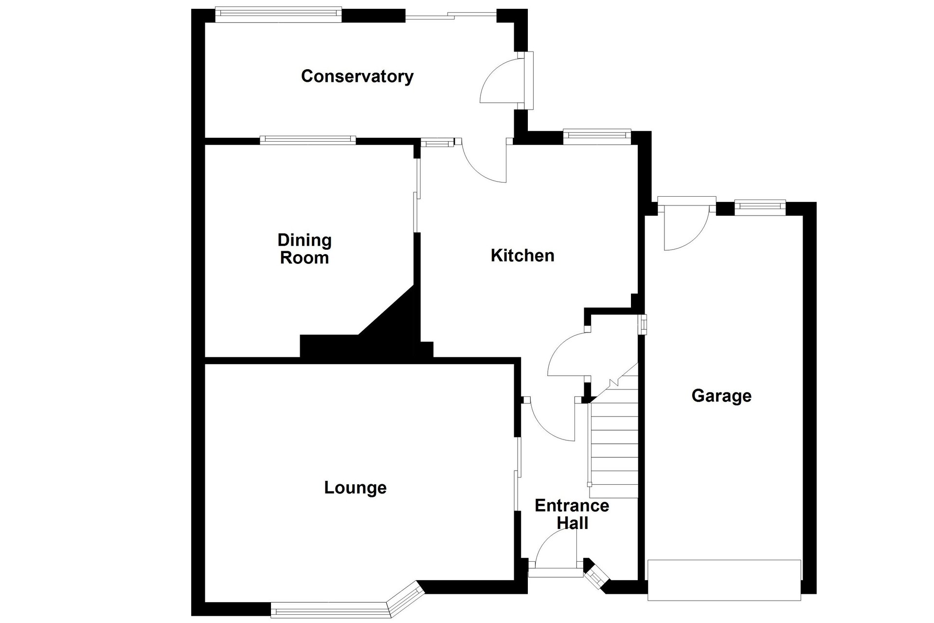 As you step inside, you're greeted by the entrance hall, which features the stairs leading to the first-floor. The lounge is a well-appointed space. It features windows to the front allowing in natural light, room for free-standing furnishings, and a sliding door providing access into the room. A feature fireplace adds warmth and character. The kitchen is ready for someone to add their own modern personal stamp. It offers space for appliances, a window looking out to the rear garden, and a useful storage cupboard. The storage cupboard would be ideal as a pantry with its built-in shelving. The dining room is a practical and functional addition to the layout, perfect for family meals. A window looks through into the conservatory, creating a sense of flow between the rooms. The conservatory is a bright and relaxing space. It features windows providing pleasant views of the rear garden and sliding doors that lead directly outside, making it ideal for enjoying the outdoors from inside.