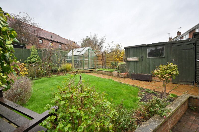 The front of the home is designed to be low maintenance and offers off-road parking for vehicles. It also boasts a garage, providing additional parking or the option to use it as a workshop or convenient storage space. A side gate leads into the rear garden, which is partly laid to grass and partly laid to be low maintenance, creating a practical and versatile outdoor area. There is space for both a shed and a greenhouse.