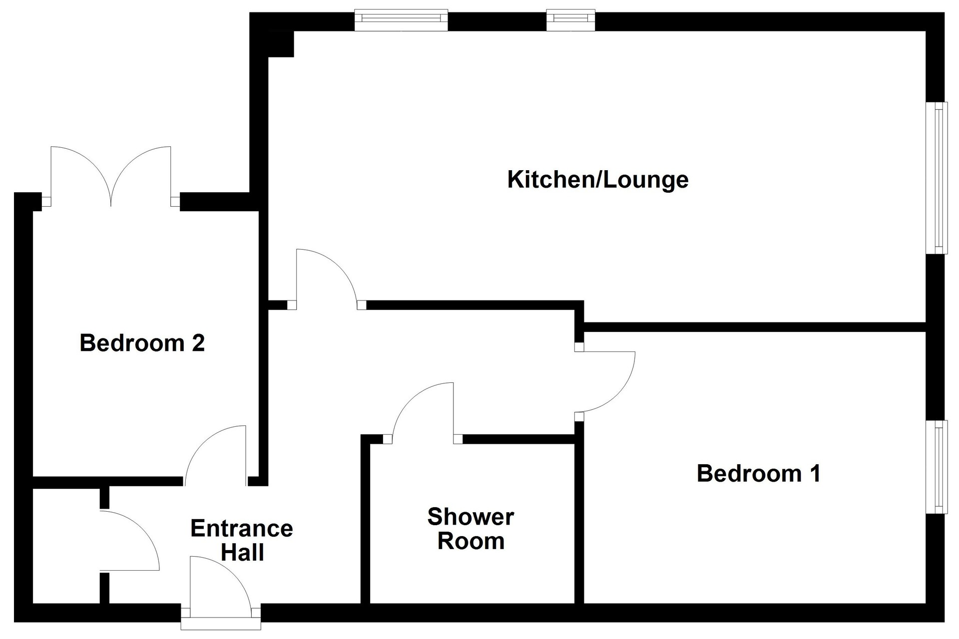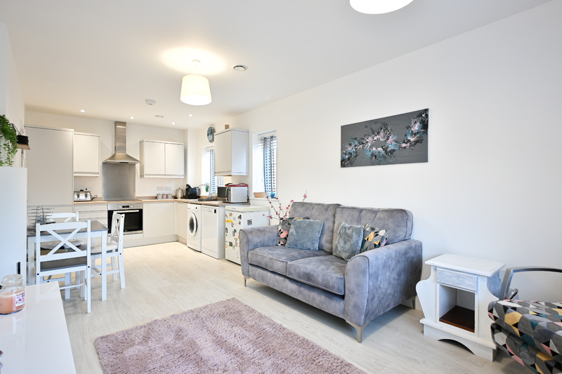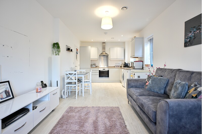 As you enter the property, you are welcomed into the entrance hall, which offers space to remove coats and shoes and also benefits from a useful storage cupboard, ideal for keeping belongings neatly tucked away. The shower room is modern and practical, featuring a shower, hand-wash basin, and wc. The kitchen/lounge is a bright and inviting space. Three windows allow plenty of natural light to flow through, and there is ample room for free-standing lounge furniture as well as a dining table and chair set if desired. The kitchen is fitted with modern cabinetry and includes an integrated oven, touchscreen hob, and fridge, with additional space provided for further appliances. Bedroom one is a well-proportioned double room, offering a window to the front and space for additional bedroom furniture. The wardrobes are being left by the current owners, providing a practical storage solution for the next occupier. Bedroom two completes the accommodation. This is a versatile room with space for a bed and is enhanced by double doors leading directly out to the garden, filling the room with natural light and providing easy outdoor access.