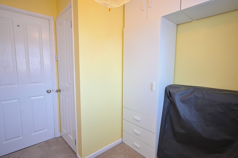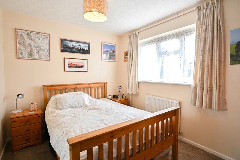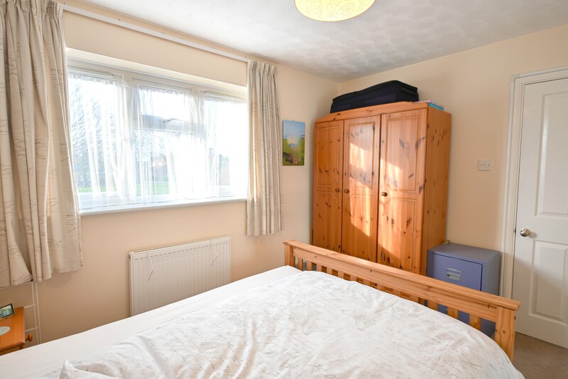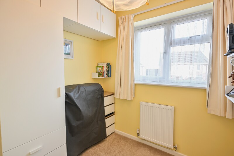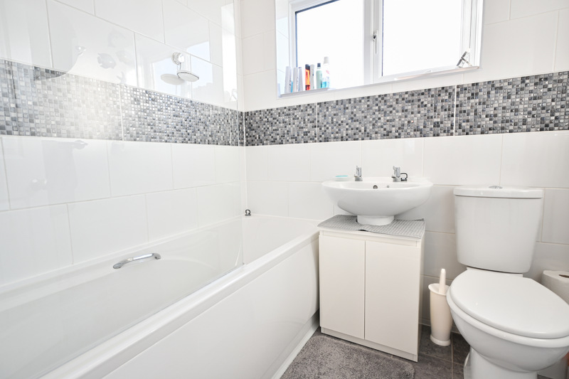The first-floor hosts three bedrooms and the family bathroom, along with a landing that features a window allowing in natural light and an airing cupboard. Bedroom one is a double-sized room with a window to the front, allowing in natural light. It offers space for a bed and additional furnishings and benefits from a built-in sliding-door wardrobe. Bedroom two is another double-sized room, featuring a sliding-door wardrobe and a window overlooking the rear garden. Bedroom three is a versatile space that would make an ideal single bedroom, home office, or room to suit your needs. A storage cupboard adds practicality. Completing the first-floor is the family bathroom, which is brightened by a window and features a bath with an overhead shower, a hand-wash basin, and a WC.