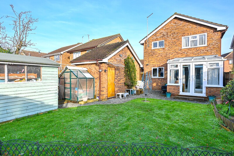 As you step inside, you are greeted by the entrance hall, offering space to remove coats and shoes along with a useful understairs storage cupboard. Nearby is the downstairs cloakroom, which features a hand-wash basin and WC. The kitchen is a practical space, featuring a window looking into the rear garden and a door leading out to the side of the property. Integrated appliances include a dishwasher, oven, and touchscreen hob, while space is also provided for a fridge and a washing machine. The lounge is a well-appointed and comfortable room. A box window to the front adds both character and additional space, while room is provided for lounge furniture, making it an ideal place to sit back and relax. The dining room is a versatile and practical addition to the home. It is ideal for family meals but could also be adapted to suit another use if required. Double doors from this room lead into the conservatory. The conservatory is a bright and relaxing space, perfect for unwinding while enjoying views of the rear garden. Double doors also lead directly out to the garden, enhancing the indoor-outdoor flow.