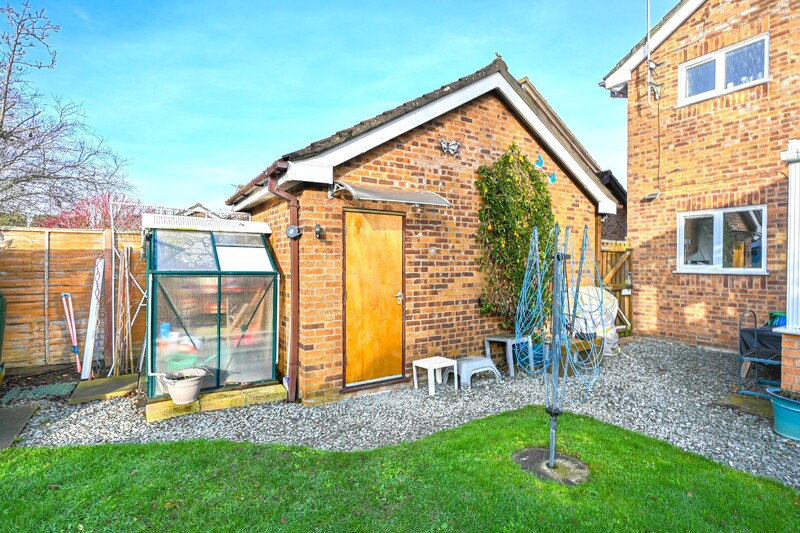 The front of the property is designed for low-maintenance living and offers off-road parking for vehicles, ensuring convenience. A garage is also provided, offering additional parking or the flexibility to be used for storage or a workspace. The rear garden is mainly laid to grass, making it ideal for families and adding a vibrant green feel. Space is also provided for a shed, offering practical outdoor storage.