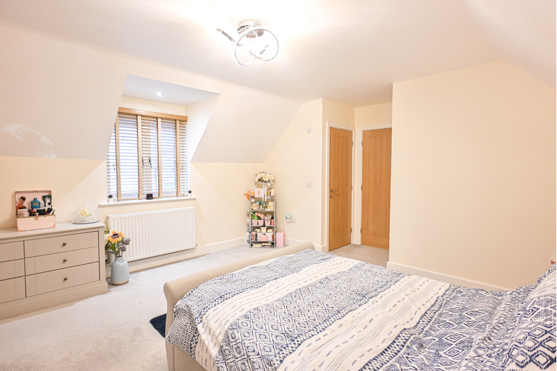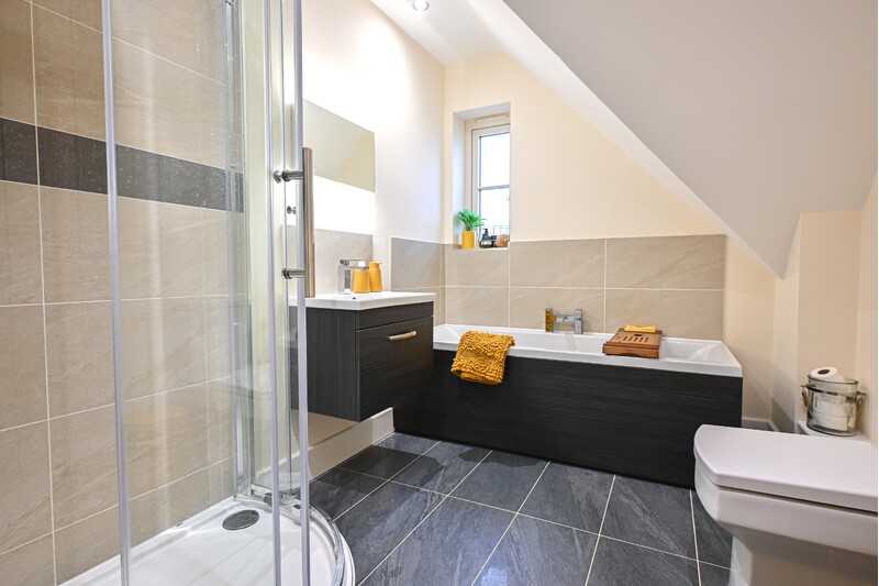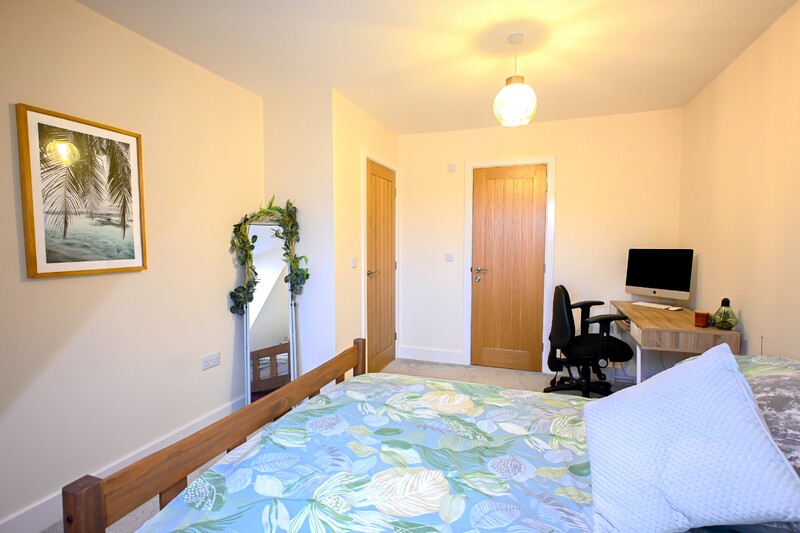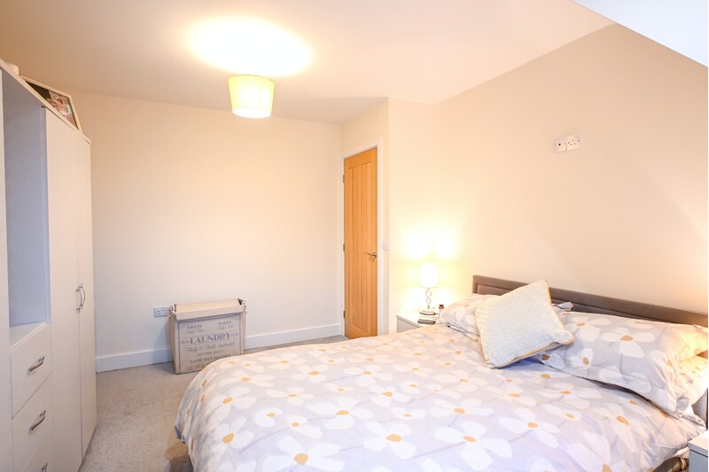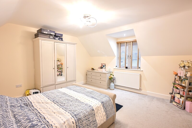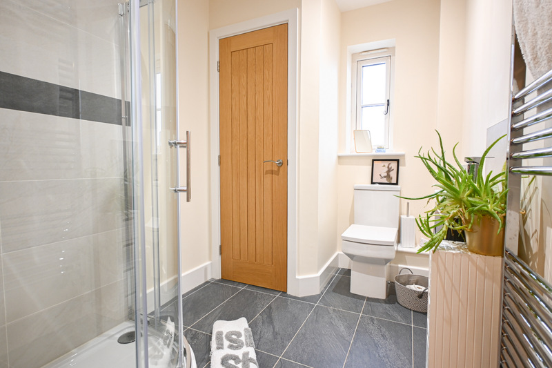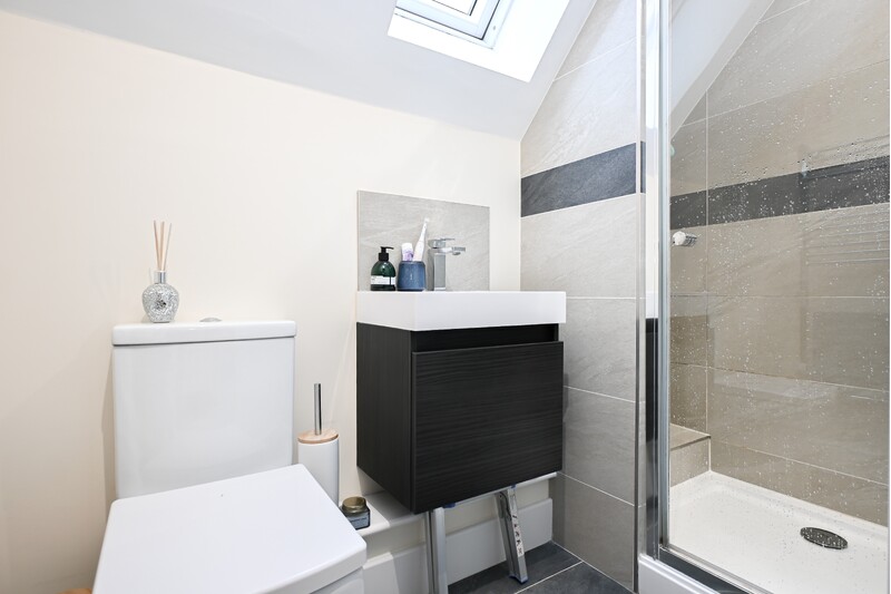 The first-floor hosts three bedrooms, a family bathroom, and two en suites, offering a practical and well-balanced layout for family living. The family bathroom is a well-appointed space, featuring a bath, separate shower, hand-wash basin, and WC. Sloping ceilings add charm and character, while a light-up mirror enhances both style and practicality. Bedroom one is a spacious double room, providing ample space for a double bed and additional bedroom furniture, creating an open and comfortable feel. A window allows natural light to fill the room, and a benefit is the private en suite. The en suite features a shower, hand-wash basin, WC, and a skylight window, allowing in natural light. Bedroom two is another double bedroom. A front-facing window brings in natural light, while sloping ceilings add further character. This room also benefits from its own en suite bathroom, making it a private retreat. The en suite features a bath, hand-wash basin, and wc. Bedroom three continues the character of the home with sloping ceilings and offers space for a double bed along with additional furnishings, making it a comfortable and versatile room.