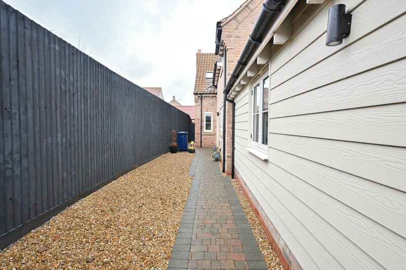 The front of the property features a gate providing access to the entrance door and also the rear garden. The rear garden is a well-proportioned and inviting outdoor space, mainly laid to lawn, making it ideal for families and pets while adding a pleasant sense of greenery. A patio area is also provided, offering the perfect spot for outdoor furniture where you can sit back, relax, and enjoy the space. To the side of the property, there is additional practical space, ideal for discreetly storing bins or accommodating other storage needs.