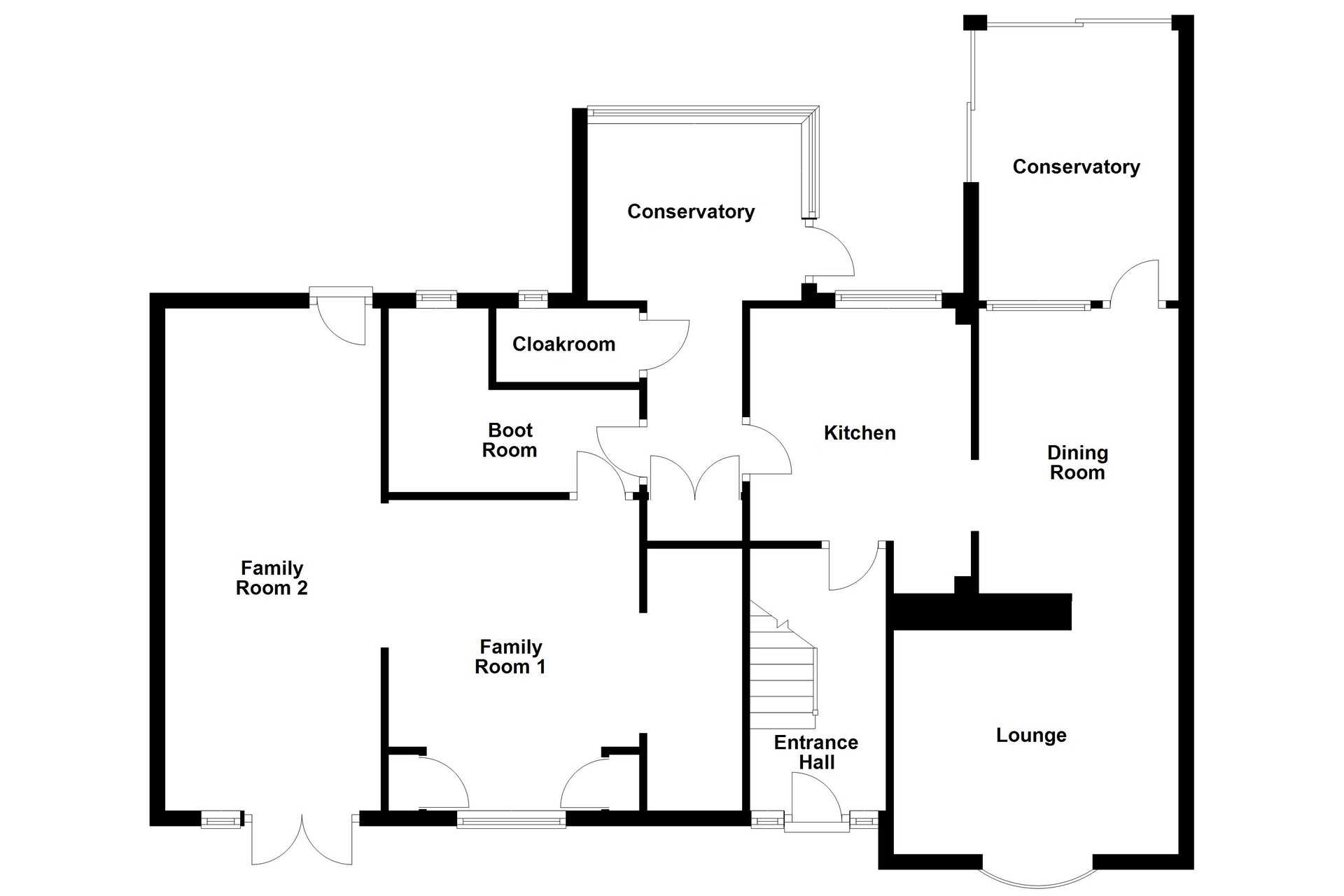 As you step inside, you are welcomed by the entrance hall, offering space to remove coats and shoes. Stairs lead up to the first-floor, while useful understairs space adds extra practicality. The kitchen is a modern and well-presented space, fitted with an oven, hob, dishwasher and pull-out bin, while also providing room for a fridge. The kitchen also benefits from a Water2 filter system, providing filtered drinking water. The dining room is a practical addition, offering an ideal spot for a dining table and chair set, perfect for family meals and entertaining. Nearby is the lounge, a cosy and inviting room featuring a bow window to the front and a multi-fuel stove fire, adding warmth and a welcoming feel. The conservatory is a bright addition to the home, offering space for free-standing furnishings and flexibility to be used to suit your needs. Two sets of sliding doors lead out to the rear garden. The utility room is a valuable benefit for family life, offering space for laundry appliances and additional storage. It features windows looking out to the rear garden, a door leading outside, and a useful double-door storage cupboard. Nearby is the cloakroom, fitted with a hand-wash basin and WC. The boot room is another practical feature, offering further flexibility and the opportunity to be adapted into a room of your choice. Family room one provides an additional reception space, ideal as a second lounge. It features an electric fire, space for free-standing furnishings, and benefits from two storage cupboards. An archway leads through to a useful additional area, perfect for storage or other requirements. A further archway leads into family room two, a versatile and adaptable space ready for your own personal stamp. This room benefits from double doors to the front and a door to the rear, making it ideal for a variety of uses. Upstairs, the first-floor hosts four bedrooms, the family bathroom, dressing room, and en suite. Bedroom one is a spacious double room with room for a king-size bed if desired. Two windows allow in natural light and there is ample space for additional furniture. A built-in wardrobe provides further practicality. This bedroom is complemented by a dressing room, which includes additional wardrobe space and a window. Nearby is the en suite, which offers a shower, hand-wash basin, and WC with a modern finish. Bedroom two is another double-sized room, offering space for a double bed and additional furnishings. It benefits from a built-in double wardrobe. Bedroom three is also double-sized and offers space for further furnishings. A built-in storage cupboard is provided, and a window overlooks the rear garden, providing pleasant views. Completing the first-floor is bedroom four, a versatile room that can be used as a bedroom, home office, or any other space to suit your lifestyle. A built-in storage cupboard adds further convenience.