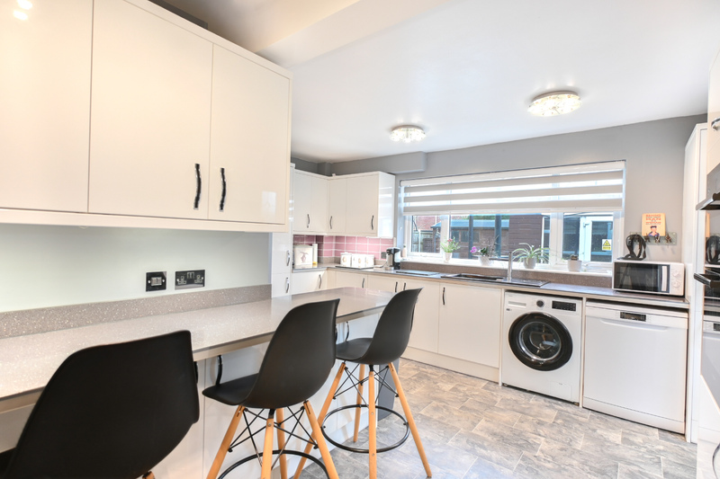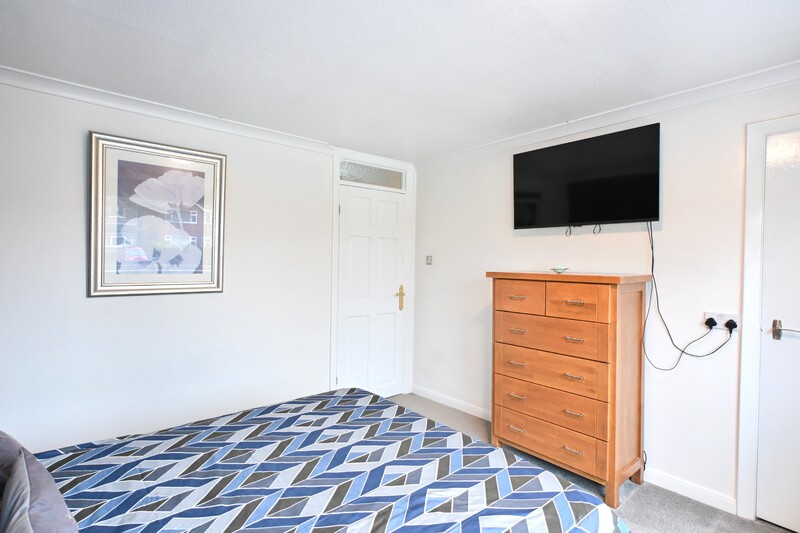 The first-floor hosts four bedrooms and the shower room. The shower room is modern and well presented, featuring a shower, WC, and hand-wash basin with useful under-sink storage space. Bedroom one is a double-sized room offering space for additional furniture and benefits from a built-in cupboard. Bedroom two is another double bedroom, made bright and airy by two windows allowing in natural light. Bedroom three is a versatile room with a window overlooking the rear garden and also houses the airing cupboard. Bedroom four completes the accommodation and offers flexibility, making it suitable as a bedroom, hobby room, or upstairs office.