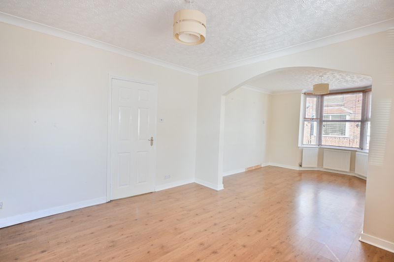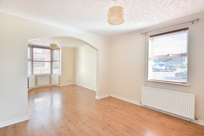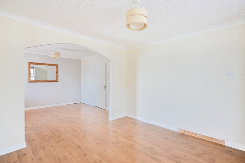 As you enter, you are welcomed into the entrance hall, offering space to remove coats and shoes, with stairs leading to the first-floor accommodation. A door leads through to the kitchen, which is fitted with an integrated oven and hob, and offers space for additional appliances including a fridge. A window looks out to the rear garden, and a breakfast bar provides a convenient spot for casual dining. A door from the kitchen also gives access to the rear garden. The dining area is a practical space for meals, featuring a window allowing in natural light. An archway leads through to the lounge, creating an open and sociable feel. The lounge is a cosy and inviting room, benefiting from a bay window to the front and offering space for free-standing furnishings, making it an ideal place to relax.