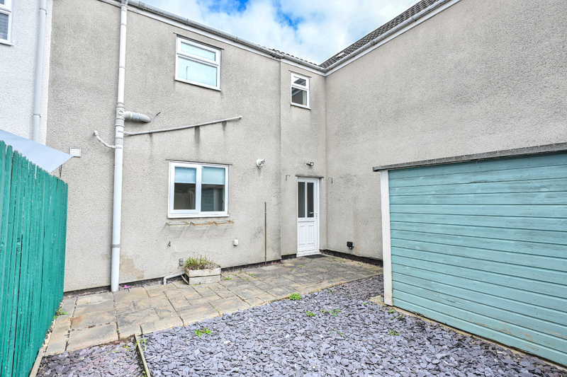 The rear garden is designed for low maintenance, making it ideal for outdoor seating and relaxation. A gate provides access to the rear, where off-road parking is available. The rear of the property also features an external power point by the rear door and a powered shed. The shed is currently used to house a tumble dryer and freezer, offering useful additional utility space.