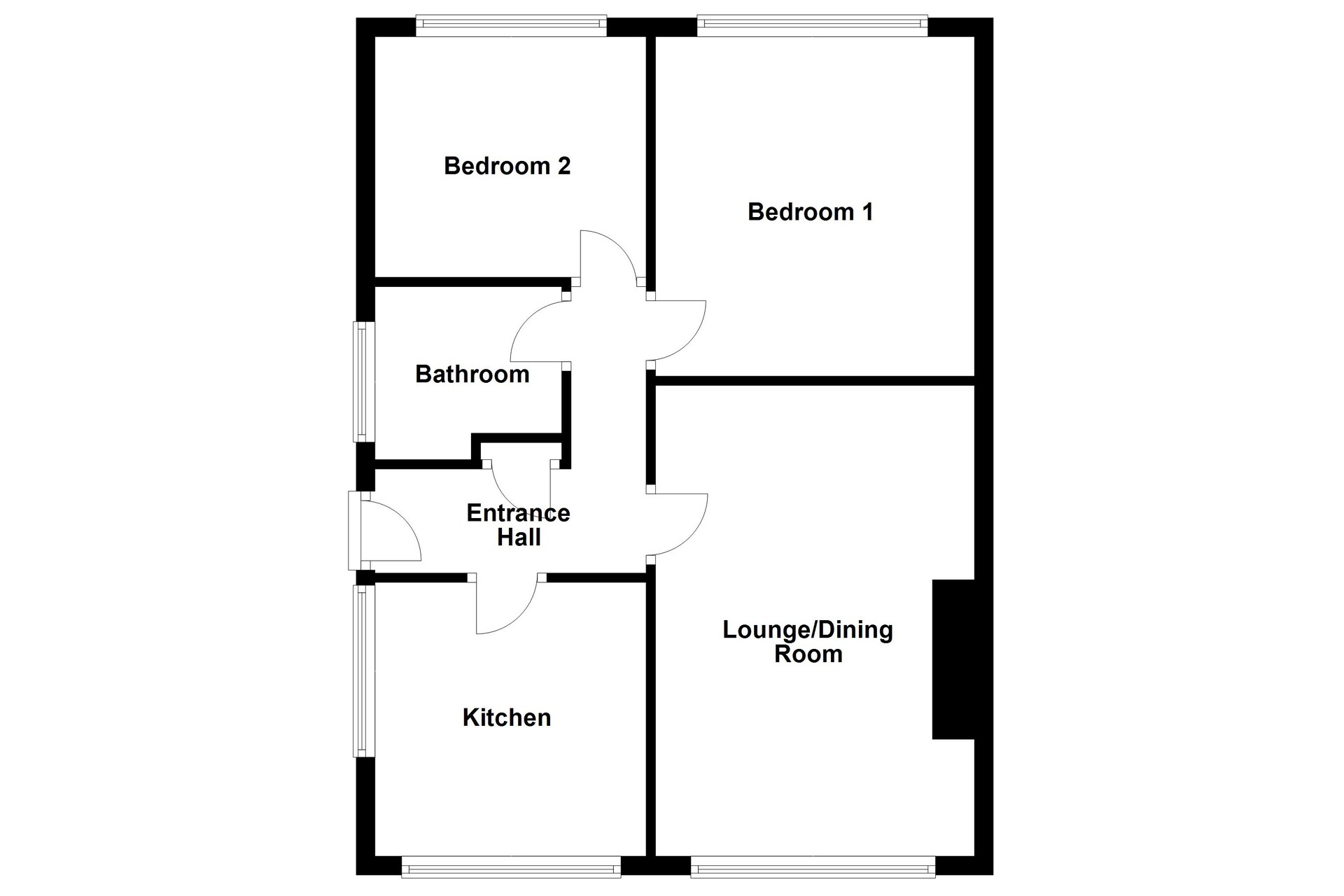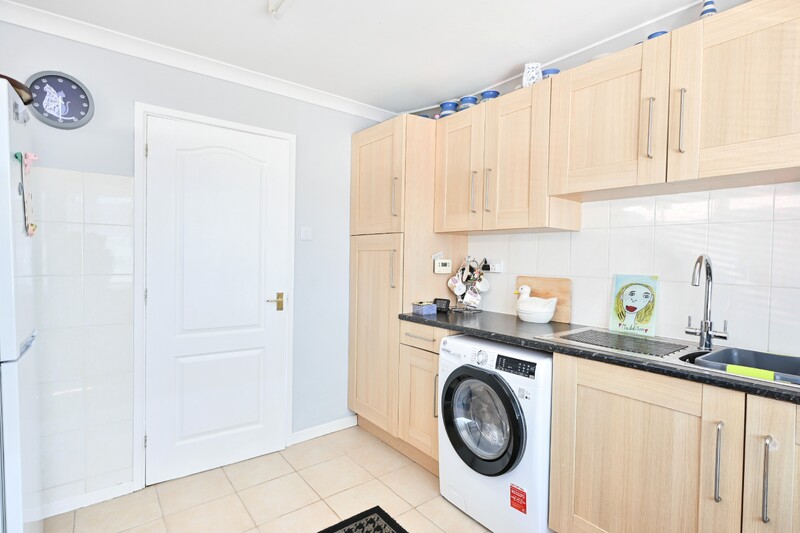Accessed via the side, you are welcomed into the entrance hall, offering space to remove coats and shoes. The kitchen is a bright space with a window to the front allowing in natural light. It features an integrated oven and hob, along with space for appliances including a fridge and washing machine. The lounge/dining room is a practical room, offering space for both lounge furnishings and a dining table and chairs set, making it ideal for relaxing and entertaining. The bathroom is fitted with a bath with shower attachment, a hand-wash basin and a WC. Bedroom one is a double-sized room with a window looking out to the rear garden. This room also offers space for additional bedroom furnishings. Bedroom two is a versatile room, suitable as a bedroom, home office or hobby space, with a window allowing in natural light.